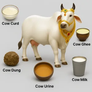 Sacred Panchagavya elements ( Cow Dung, Cow Mutra & Cow Ghee) revered for their purifying and healing properties.